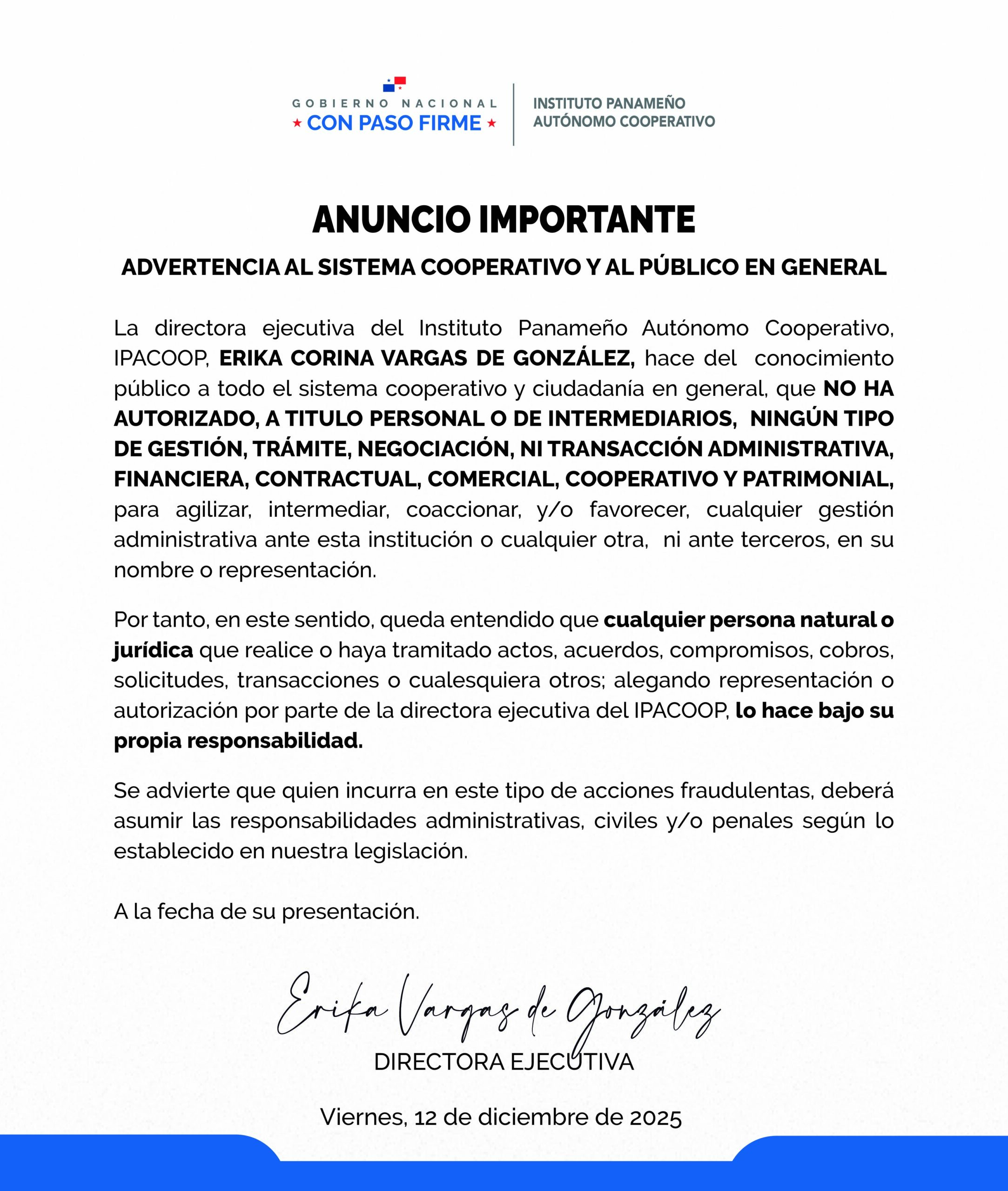 Advertencia al sistema cooperativo y al público en general.